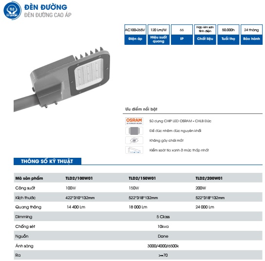 ĐÈN ĐƯỜNG CAO ÁP TLD2/100W01 TLD2/150W01 TLD2/200W01