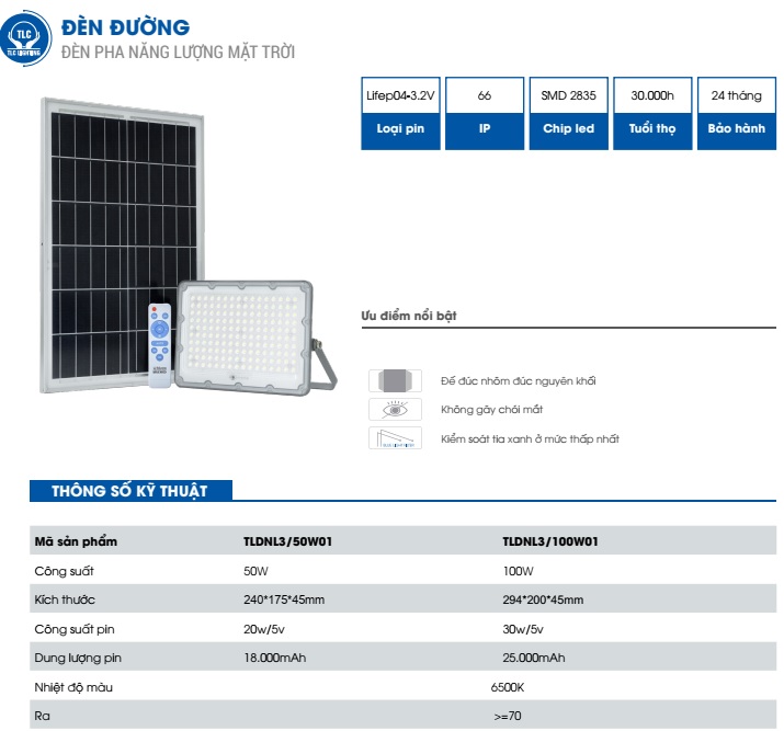 ĐÈN PHA NĂNG LƯỢNG MẶT TRỜI TLDNL3/50W01 TLDNL3/100W01